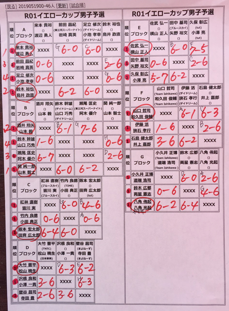令和初年度 イエローカップ大会・C級ダブルス大会