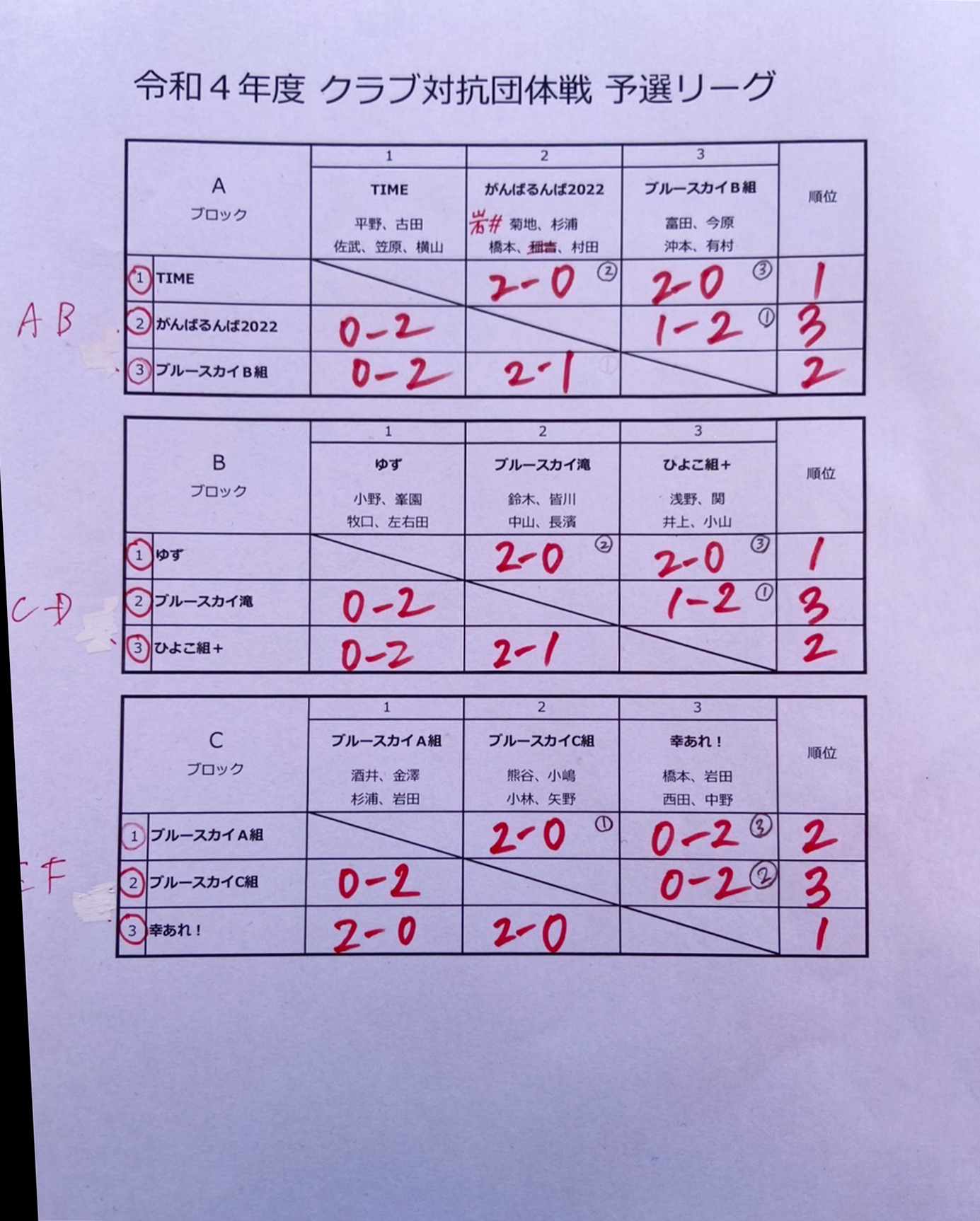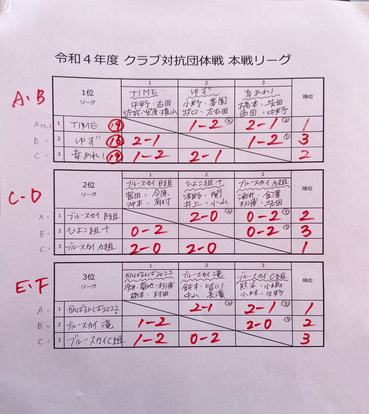 令和4年度 クラブ対抗団体戦