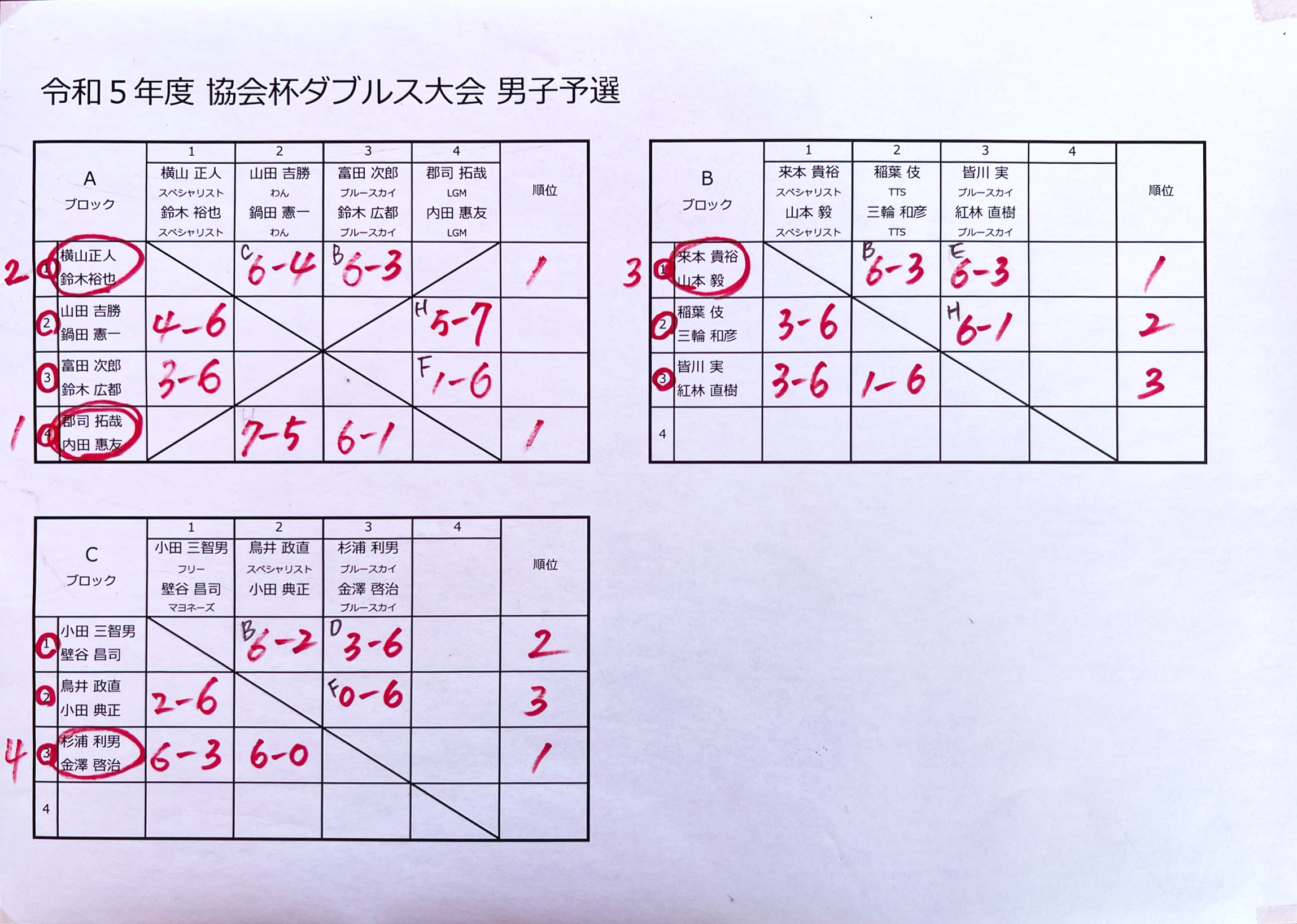 令和5年度 協会杯ダブルス大会