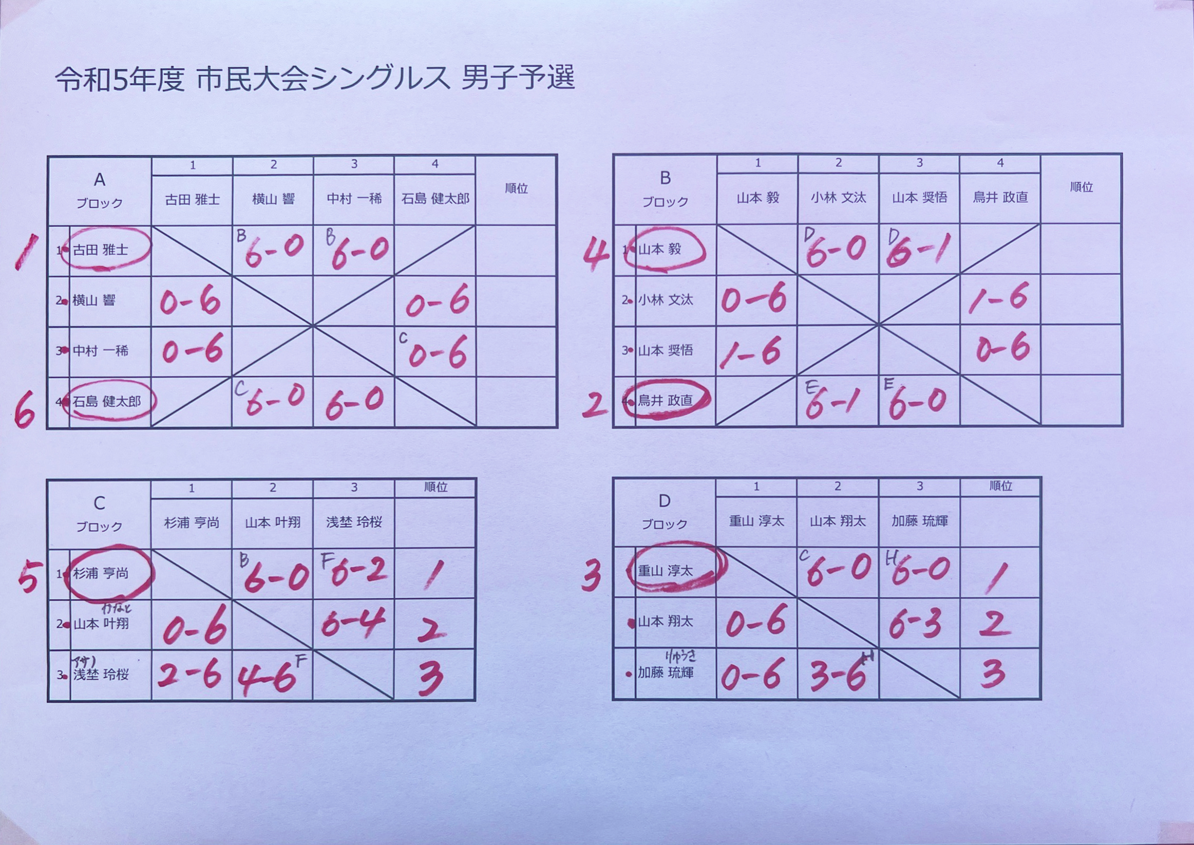 令和5年度 市民大会シングルス