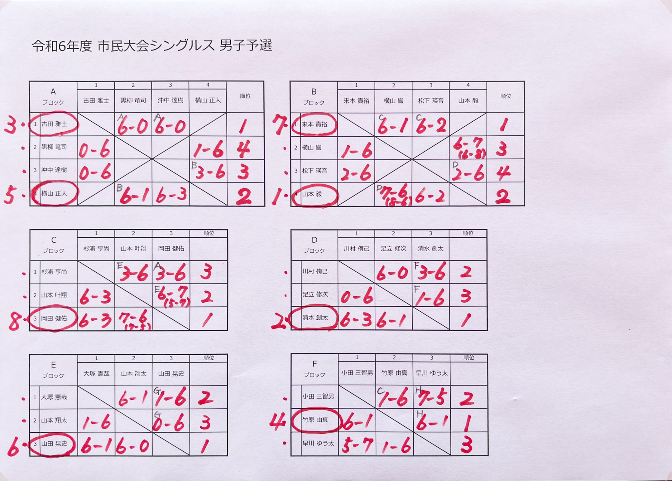 令和6年度 市民大会シングルス