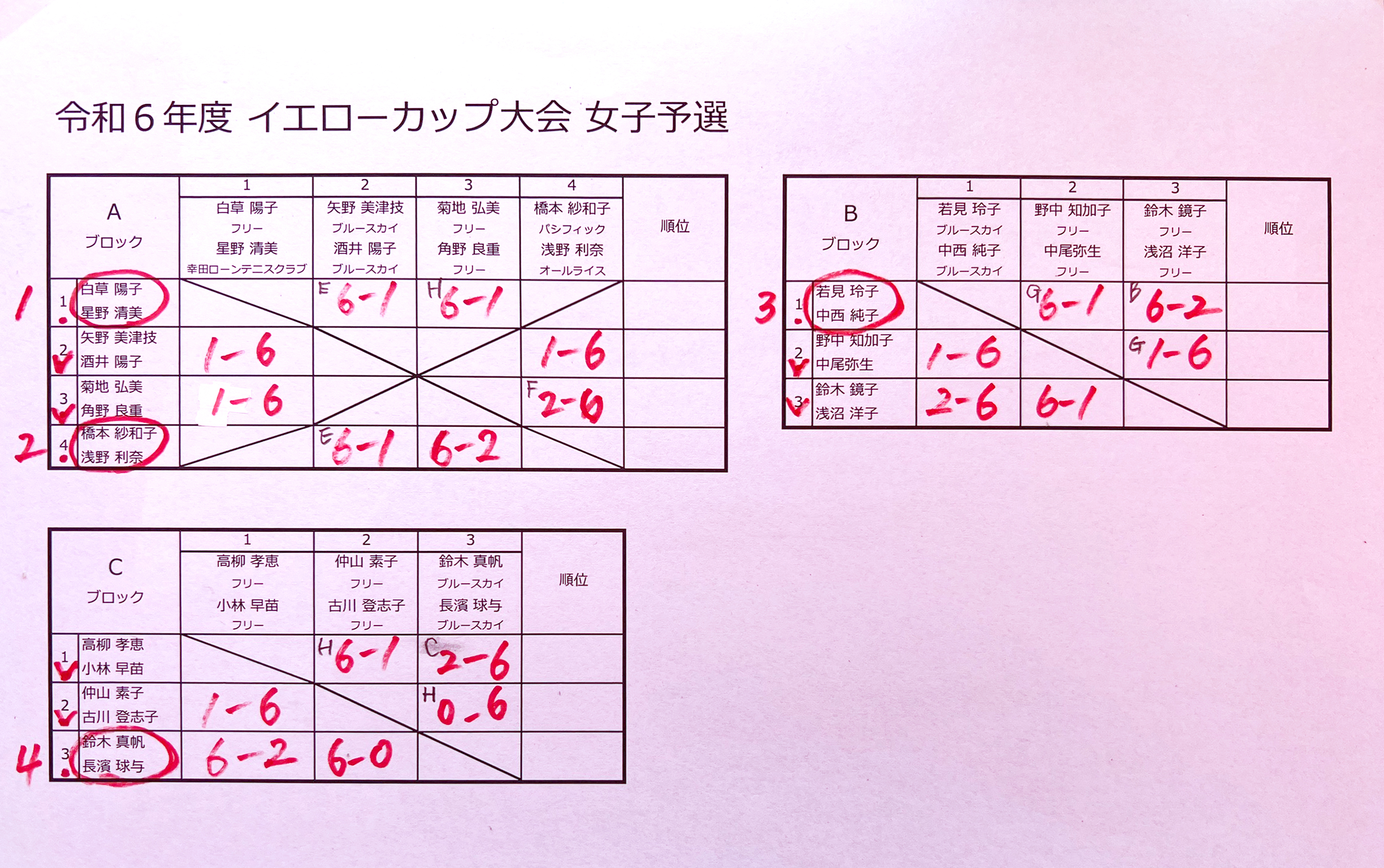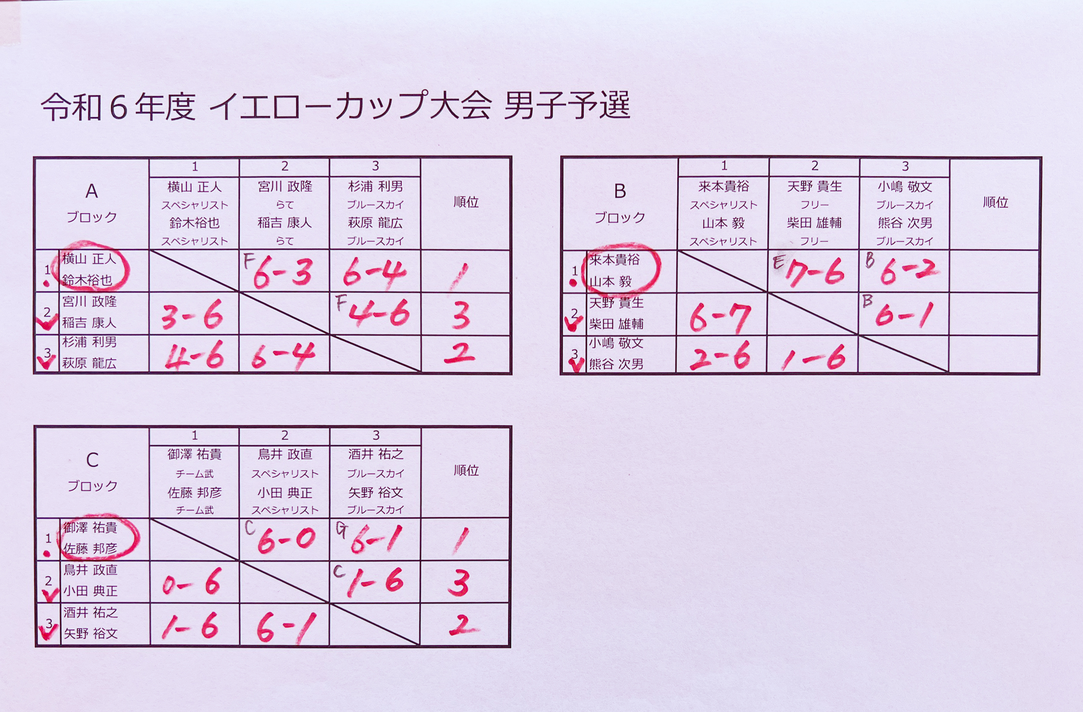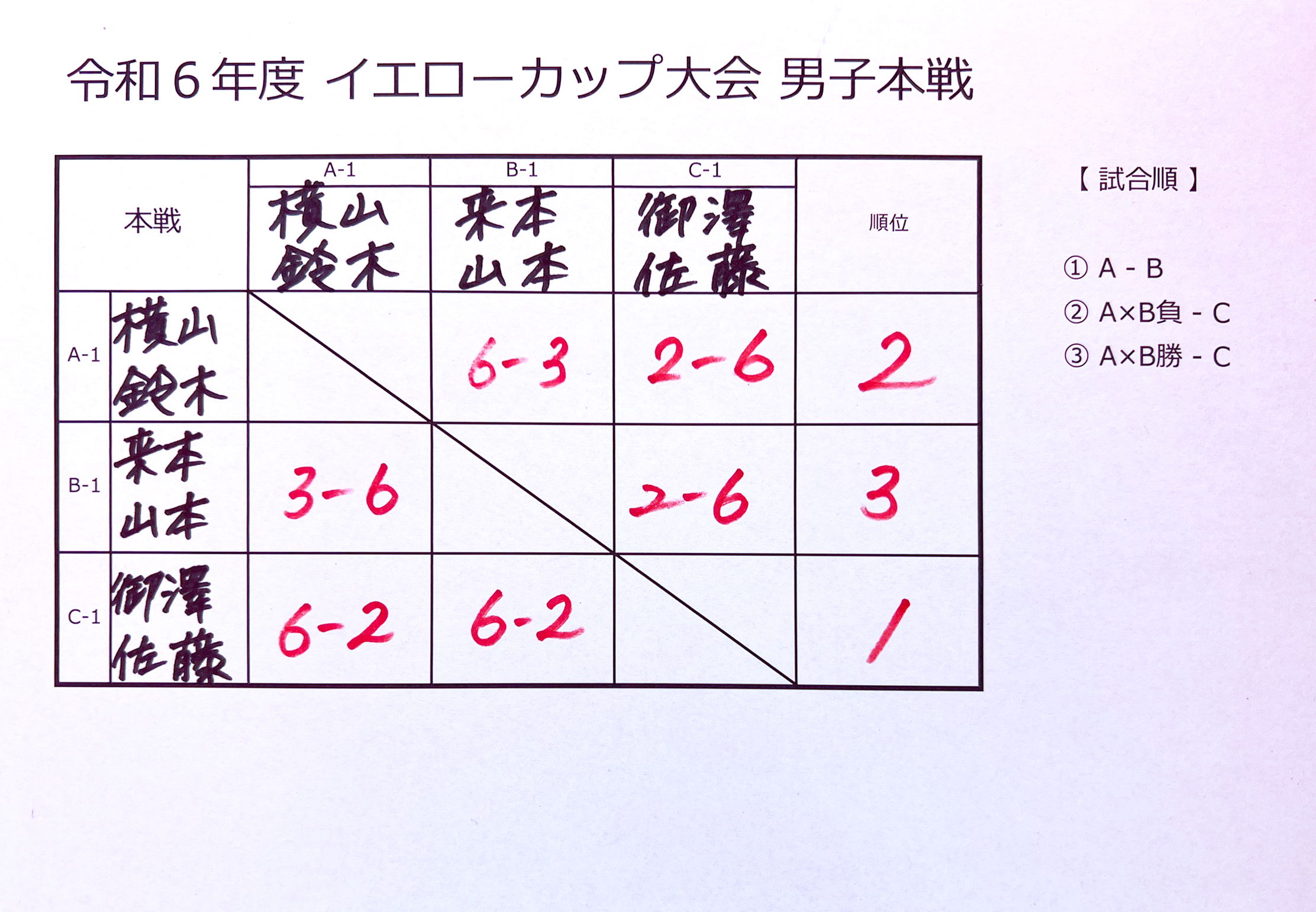 令和6年度 イエローカップ大会・C級ダブルス大会